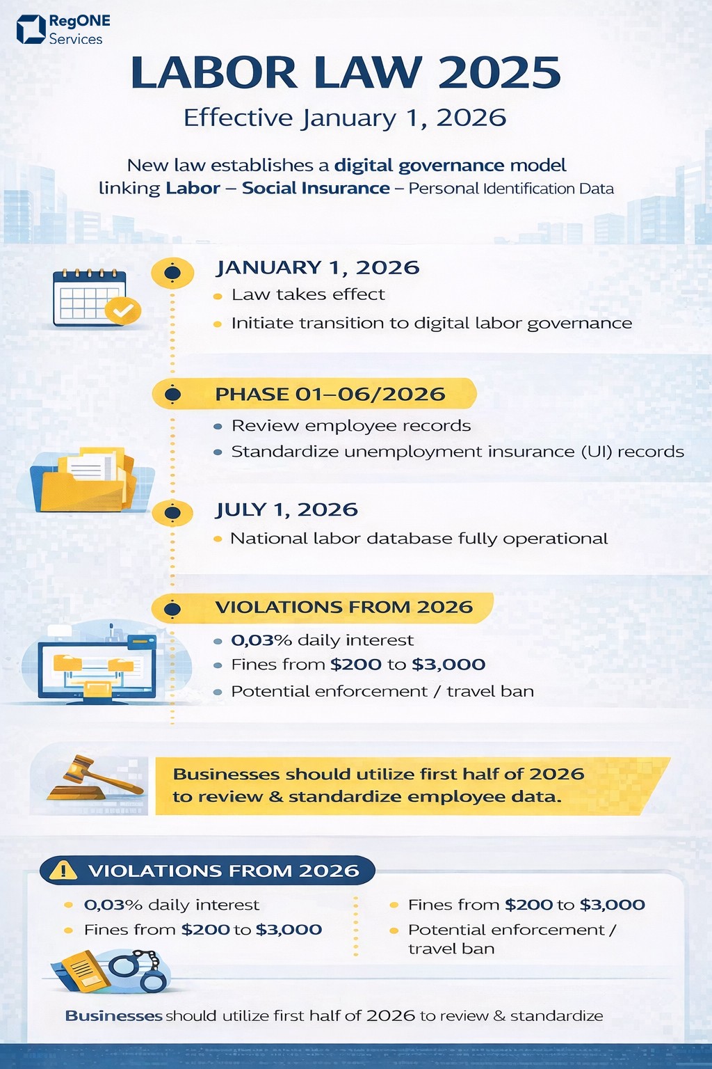 Although effective from 01 January 2026, the National Labor Registration Database system is expected to be fully operational nationwide from 01 July 2026.